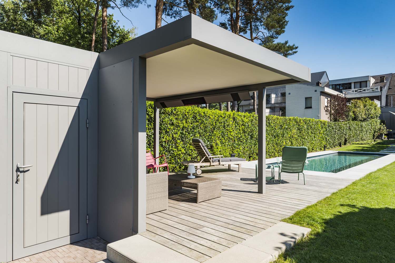 Een extra leefruimte in je tuin kan worden ingezet als technische ruimte of kleedkamer bij een zwembad of als berging voor meubels en tuingerief. Zo kun je voortaan zalig uitrusten en ontspannen terwijl alles netjes uit het zicht verdwijnt in de aangebouwde opbergruimte.