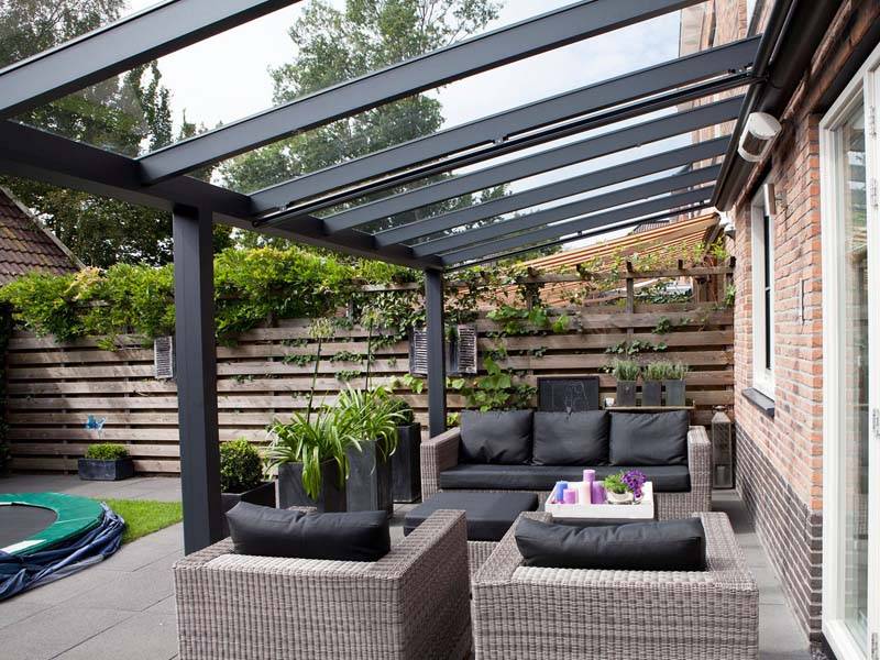 Dit uittrekbare wind- en zonnescherm kan voor meerdere doeleinden gebruikt worden, nl. als bescherming tegen inkijk van buren, of als beschutting tegen wind en zonlicht.